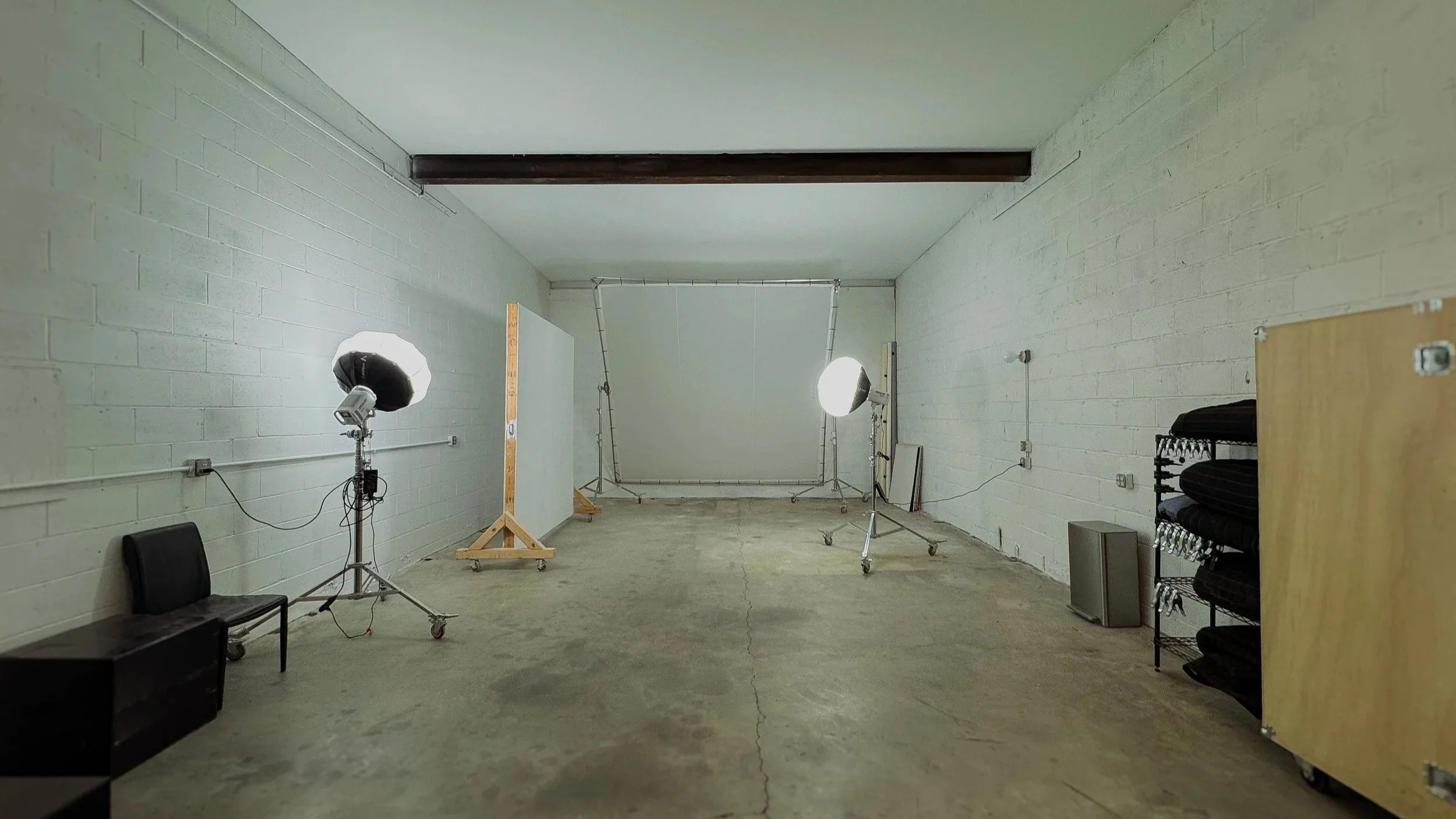 AREA 01 is the primary production space on the AH AH campus—an open, industrial studio designed for flexibility and control. The space provides full light control, access to select in-house grip and studio gear, and drive-in access for vehicles or larger set builds.